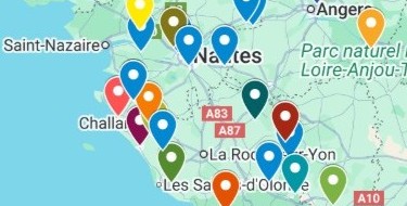 Une carte de l’Ouest précisant les lieux de résidence des adhérents en janvier 2026… Naturiste...